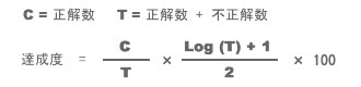 A. 1回中1回の正解と、10回中9回の正解は、正解率だけ考えると、100% と 90%になり、、1回中1回の正解の方が高く評価されてしまいます。達成度とはこのような不都合を排除するために正解率を補正した値です。
